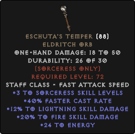 Eschutas Temperament & #8211; +3 Zaubererfertigkeiten | + 20% Feuerschaden