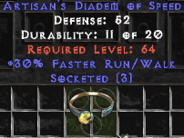 Socketed (3)Alla oleva tuote on esimerkki:Magic Circlet* with 30% Faster Run/Walk / 3 Sockets.
