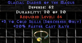 +3 Sorceress Cold Skills/20% FCR – Circlet/Tiara/Diadem/Coronet