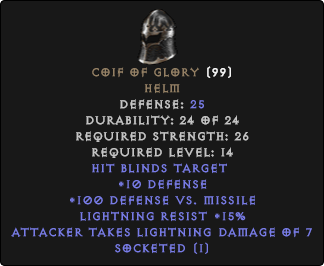 Tökéletes:+3 Masteriesnek +3 a Warcries-hez +3 a Combat Skills-hez változók:3-6% Találat alatt ellopott élet A támadó az 55-77 éves sebzést okozza+ 120-160% Továbbfejlesztett védelem