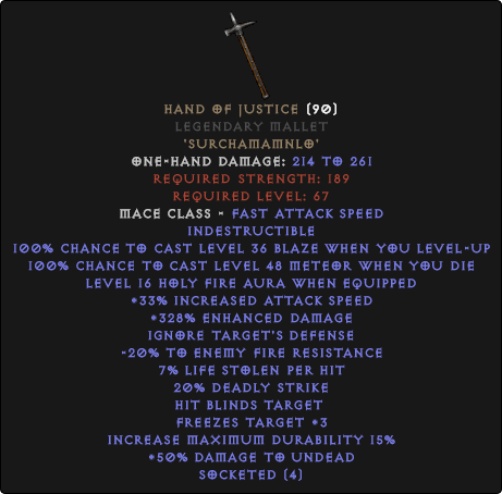 Hand of Justice Legendary Mallet & #8211; 280-330% ED