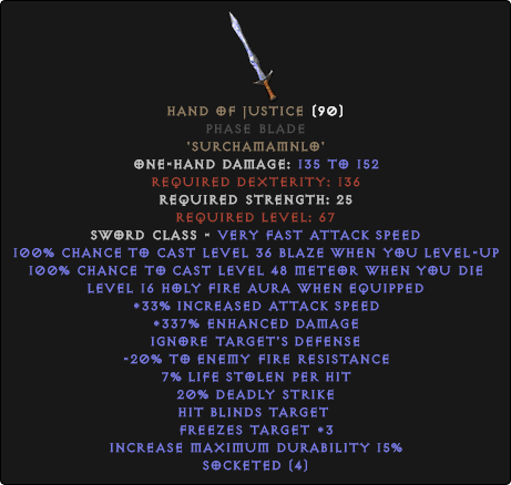 Hand of Justice Phase Blade & #8211; 280-330% ED