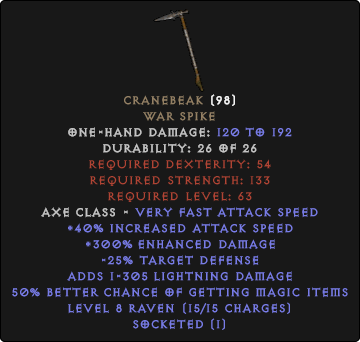 Variabels: + 240-300% Förbättrad skada20-50% Bättre chans att få magiska föremål
